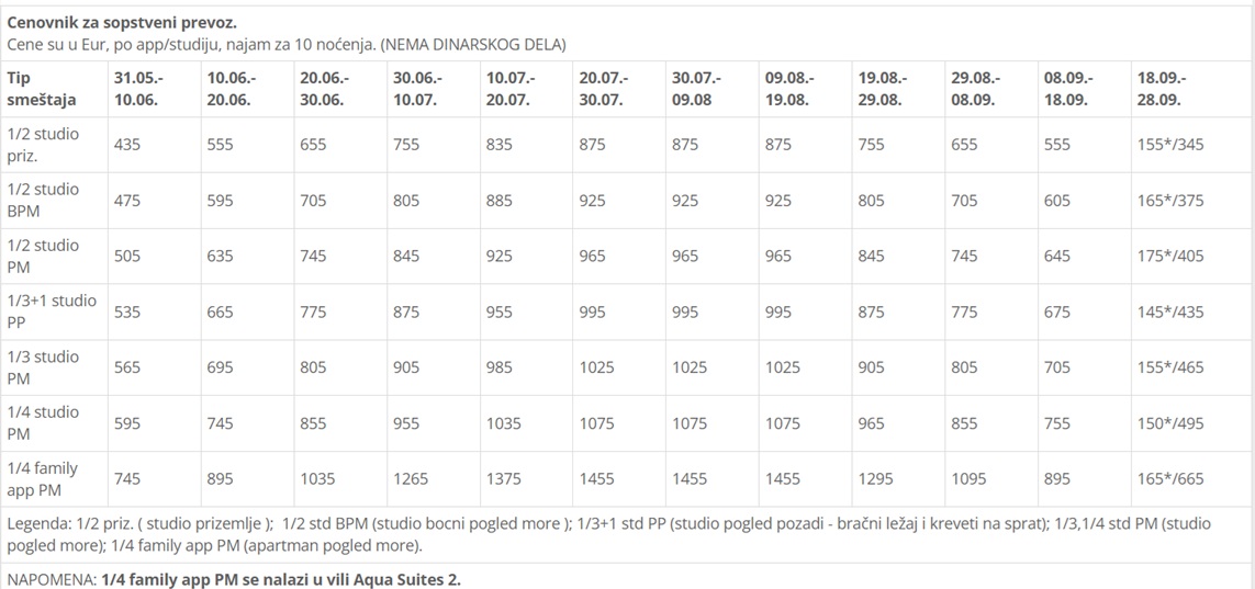 NAPOMENA: U smeštajnim jedinicama je dozvoljena priprema hrane, osim ribe.