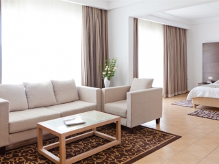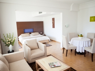 Hotel ima 457 dvokrevetnih soba u glavnoj zgradi, 128 dvokrevetnih i 8 trokrevetnih soba raspoređenih u bungalovima. Sobe su klimatizovane i imaju kupatilo, telefon, sat tv, mini frižider, a većina ima balkon ili terasu. Nema fena u sobama, ali se može koristiti uz depozit.