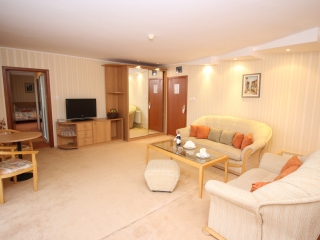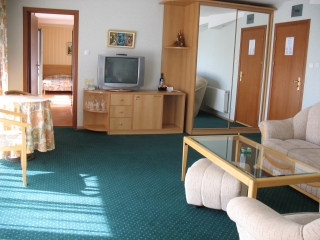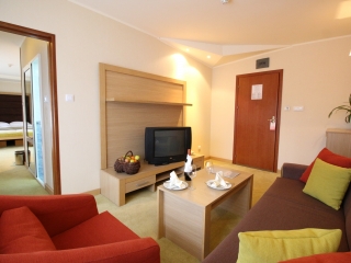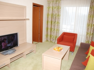 - Jednosobni apartman za 2-4 osobe (2+2): spavaća soba sa francuskim ležajem ili dva odvojena ležaja, dnevni boravak sa sofom na razvlačenje. Apartman je namenjen smeštaju maksimalno za tri odrasle osobe ili porodicama sa dvoje dece do 11,99 god.