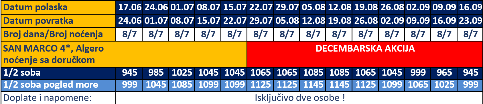 Decembarska akcija: 20 % akontacija, 20% do kraja februara, ostatak do 20 dana pred put!