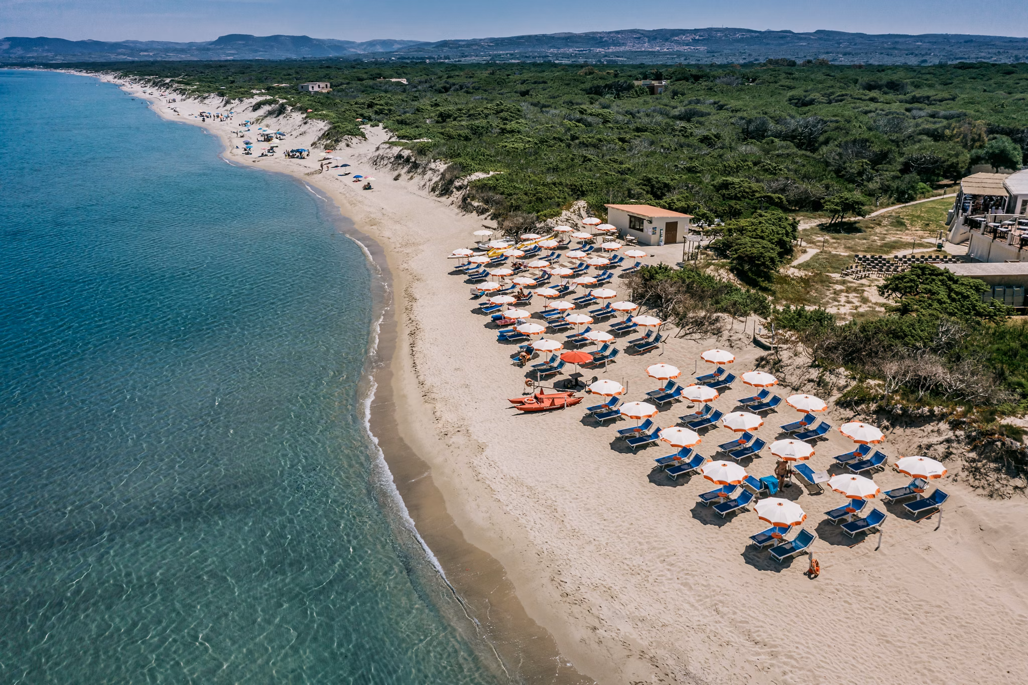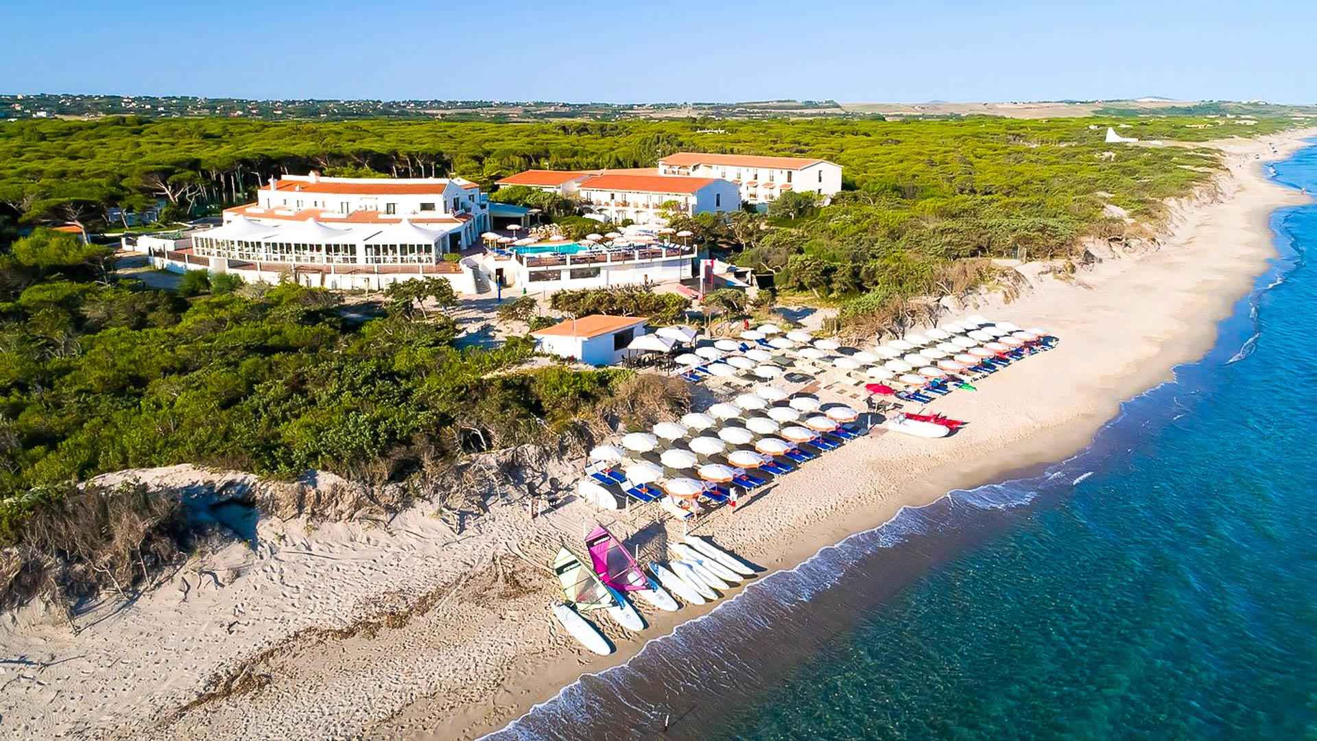 Lokacija: Hotel MClub del Golfo na ostrvu Sardinija se nalazi na samoj plaži u mestu Platamona, u oblasti Marina di Sorso. Udaljen je 14 km od grada Sasari, koji je drugi po veličini grad na Sardiniji, 13 km od mesta Porto Tores, 48 km od grada Algero, i 43 km od aerodroma Algero Fertilia. Hotel MClub del Golfo okružen je mediteranskom vegetacijom i borovom šumom. Preporučuje se za boravak porodica ili parova koji vole miran odmor.