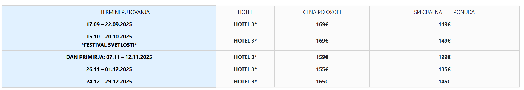 • putnici koji koriste sopstveni prevoz imaju popust 20 € (sobe na upit),