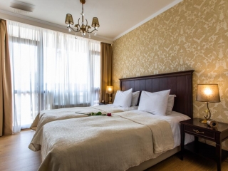 - Jednosobni apartman /Junior Suite/ (2+2) sa pogledom na grad ili planinu za smeštaj 2-4 osoba (45 – 60 m2): elegantna prostorija, saastoji se iz spavaće sobe sa francuskim krevetom i dnevnog boravka sa sofom na razvlačenje, 2 LCD TV. Smeštaj za max 3 odrasle osobe ili 2 odrasle osobe i 2 dece;