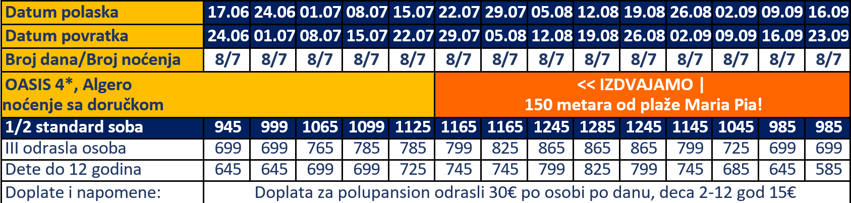 – boravišna taksa na Sardiniji se plaća na recepciji hotela (koje su podložne promeni).