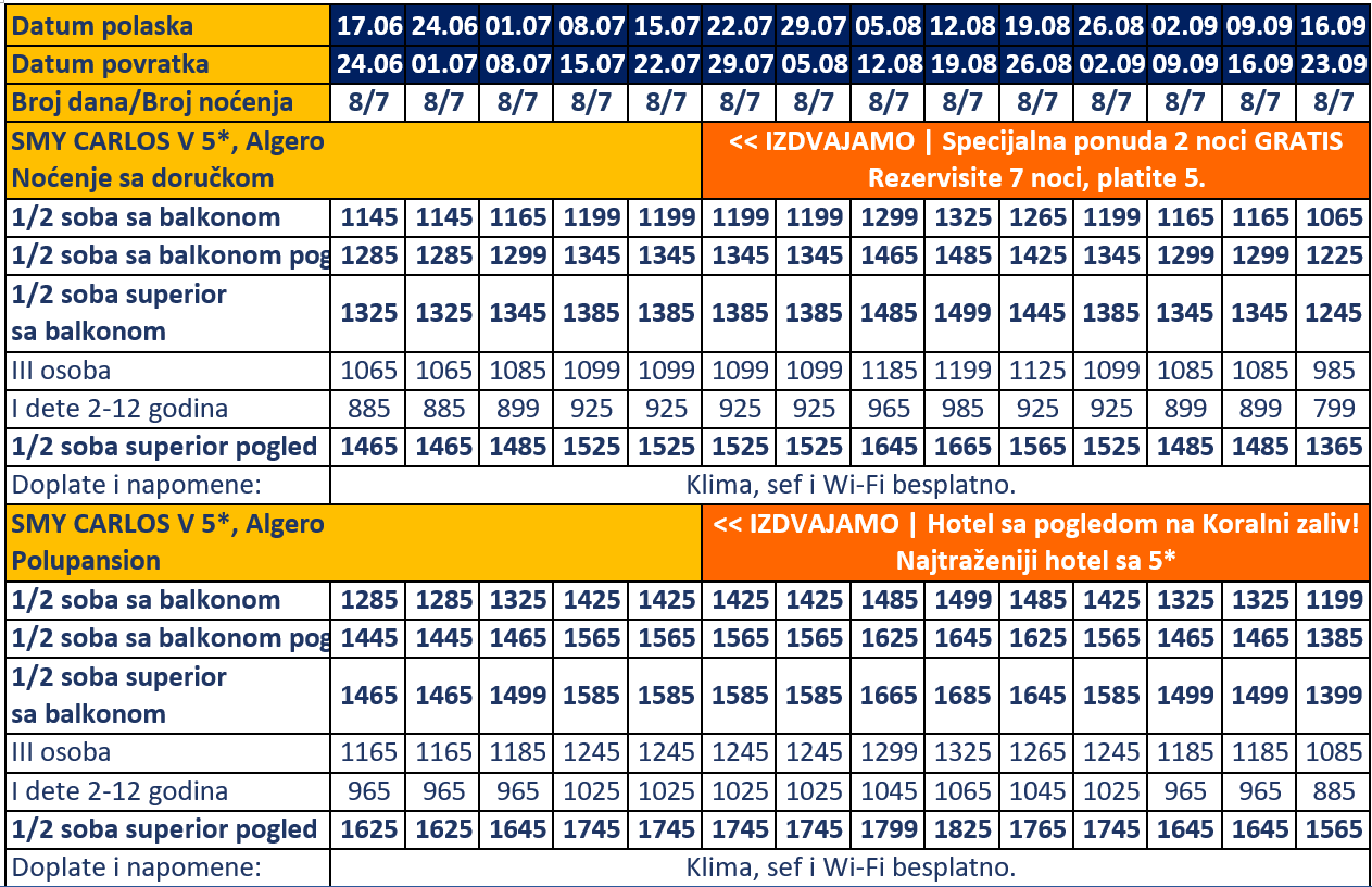 – boravišna taksa na Sardiniji se plaća na recepciji hotela (koje su podložne promeni).