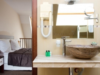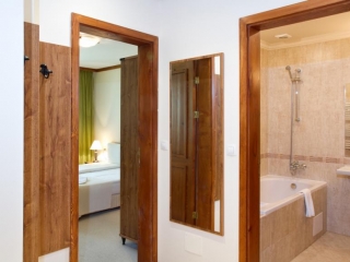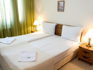 - Standardna soba (2+1): komplet renovirane, površine oko 34-37 m², francuski ležaj ili dva odvojena kreveta i fotelja na razvlačenje. Maksimalno dvoje odraslih + jedno dete do 11.99 god ili tri odrasle osobe