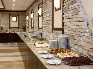 Sadržaj hotela: recepcija, lobi, lobi bar, loundge bar, restoran, konferencijska sala, prodavnica, skijašnica, potpuno renovirani spa centar na dva nivoa sa odeljkom za odrasle, fitnes, zatvoreni bazen, više sauna, parno kupatilo, internet, room servis, dečija igraonica sa animacijom, parking.